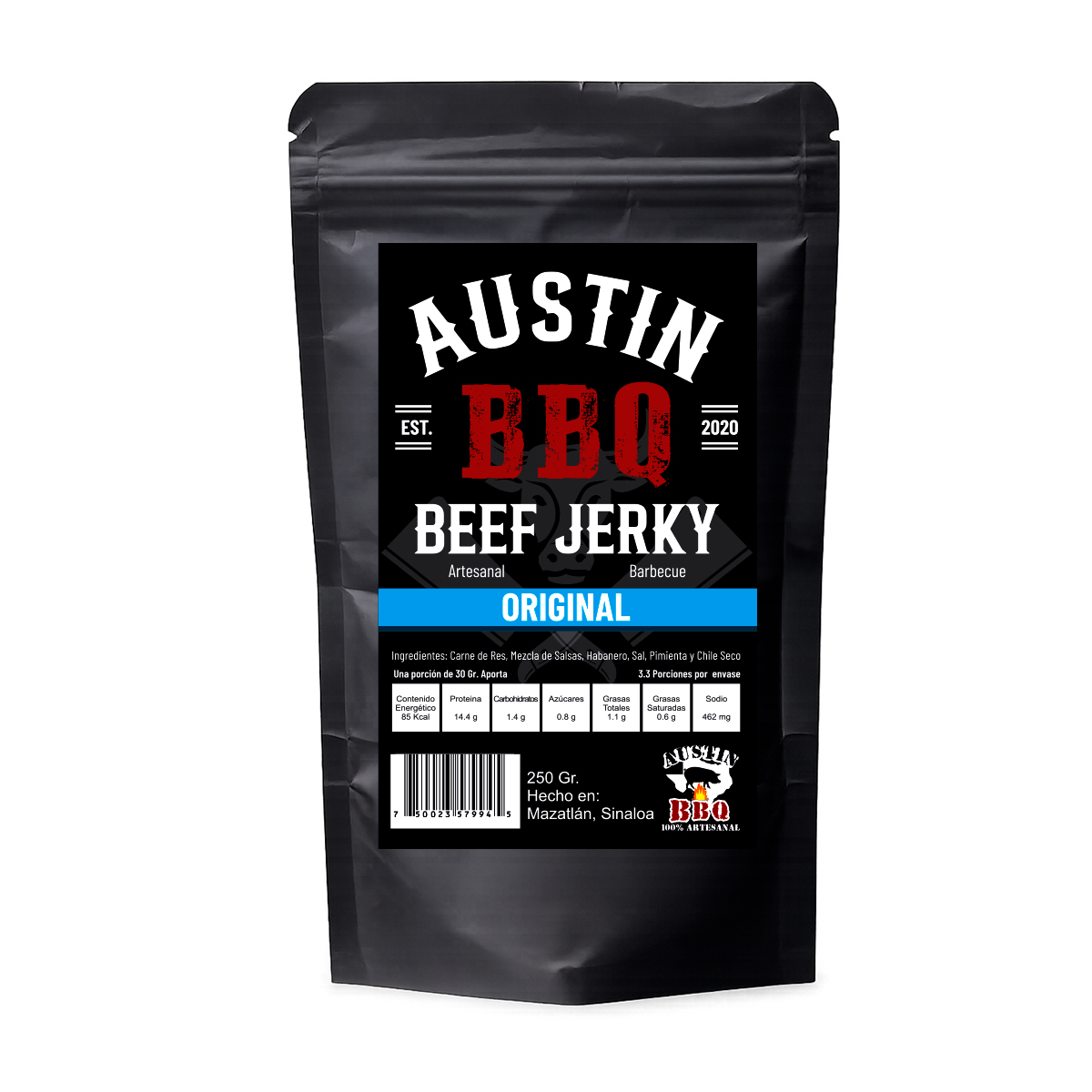 - Jerky Beef Austin Original. Sabor artesanal auténtico, 14.4g de proteÃna por porción. El snack perfecto para cualquier momento.